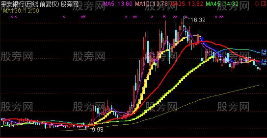 DRAWTEXT(C>=MA(C,M) AND CURRBARSCOUNT=1 AND PERIOD=5,MA(C,M),' 黄色持股 (中线)'),COLORYELLOW;