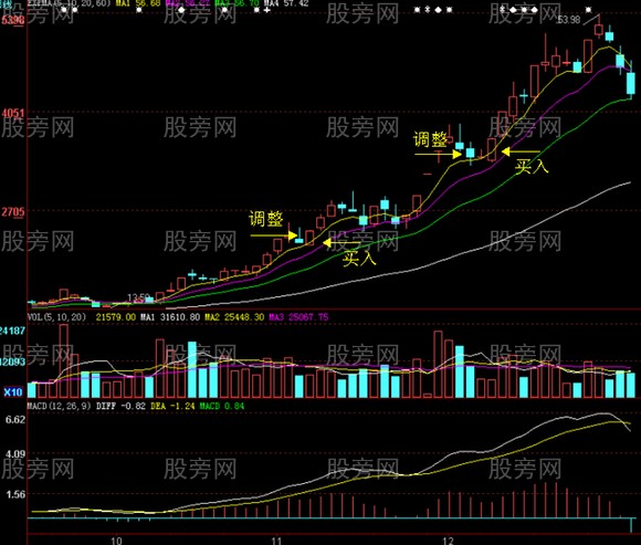 一个股票如果上涨了20%-30%以后,股价还能够上涨,说明是主力资金在运作,因为散户有这么大的盈利都走了。所以说我们可以在这个连续涨停的股票第一次调整时买入,等待后面的大涨或者涨停。