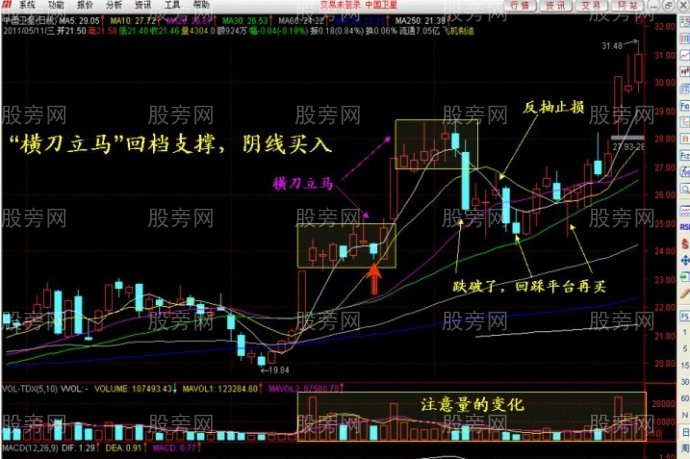 3、强势洗盘,一般不会到10日均线,因此要十日均线加几分钱买入。