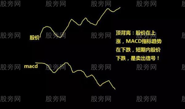 当股价k线图上的股票走势一峰比一峰高,股价一直在向上涨,而MACD指标图形上的由红柱构成的图形的走势是一峰比一峰低,即当股价的高点比前一次的高点高、而MACD指标的高点比指标的前一次高点低,这叫顶背离现象。顶背离现象一般是股价在高位即将反转转势的信号,表明股价短期内即将下跌,是卖出股票的信号。
