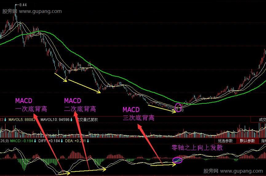 MACD底背离到0轴向上发散买入法
