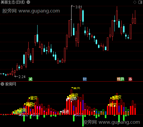 空头:STICKLINE((CLOSE < MA(CLOSE,30)),0,VOL,2,1),COLOR00FF00;