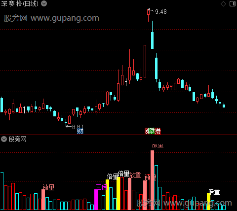 DRAWTEXT(倍量,VOL*1.1,'倍量'),COLORWHITE;